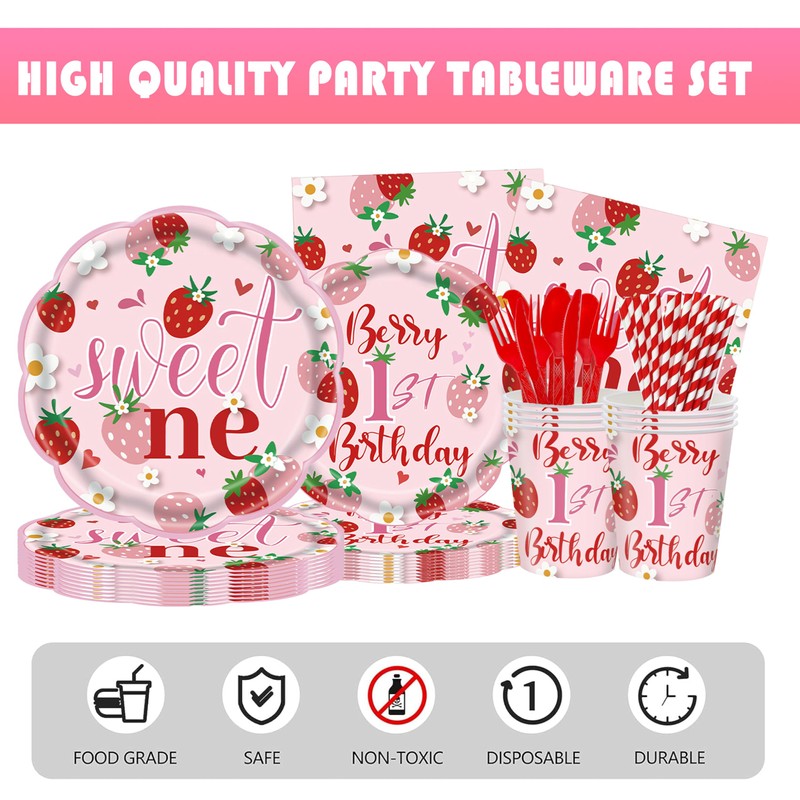 - Sweet & Safe Strawberry Designs – Our food-safe tableware features vibrant strawberry prints . The high-definition printing won’t fade or smear, keeping your party Instagram-ready all day