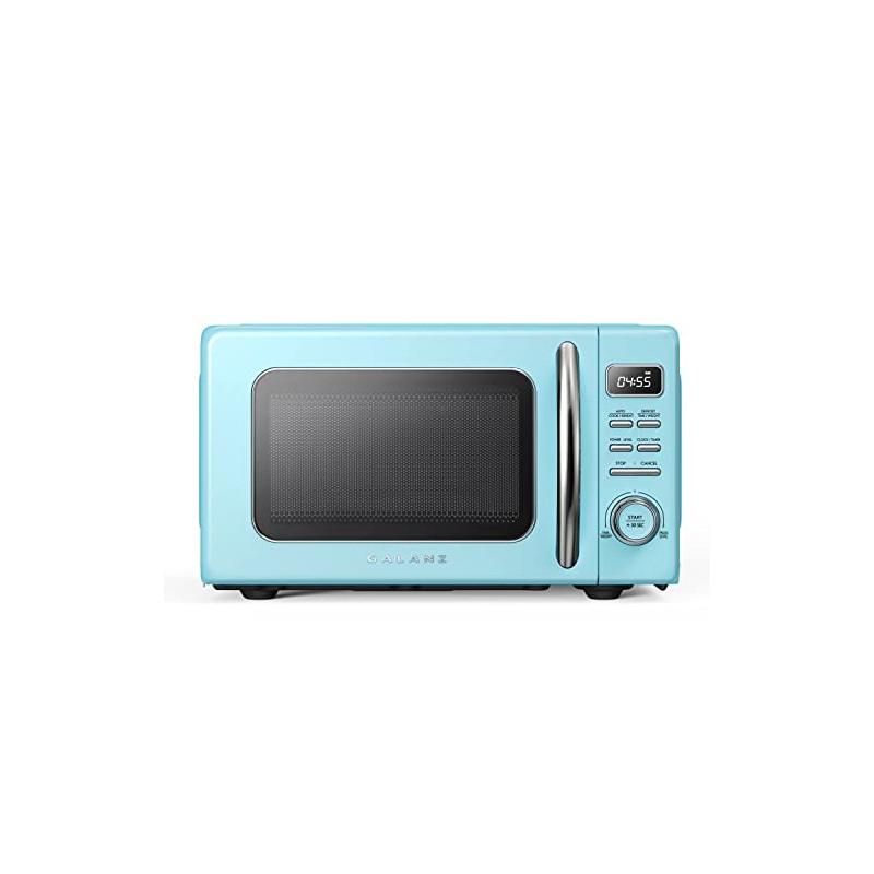 Galanz GLCMKZ09BER09 Retro Countertop Microwave Oven with Auto Cook & Reheat, Defrost, Quick Start Functions, Easy Clean with Glass Turntable, Pull Handle, 0.9 cu ft, Blue
