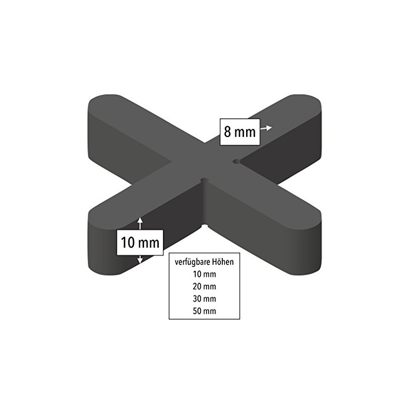 • 10 mm height for low installation heights, e.g. B. 20/25 mm ceramic plates or porcelain stoneware