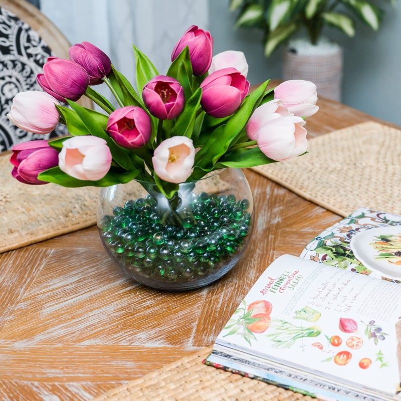 - DECORATIVE C Enhance your home with these glass gems, they are Translucent - Light will shine through. Use for flower vase, fish tank, bowls, art and crafts projects, flower arrangement, table scatter, and more.