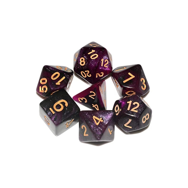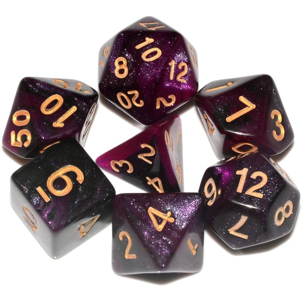 Galaxy DND Dice 7Pieces, Glitter Sparkle Cosmic Purple Black Mixed Polyhedral DND Dice for RPG MTG Table Game Dice