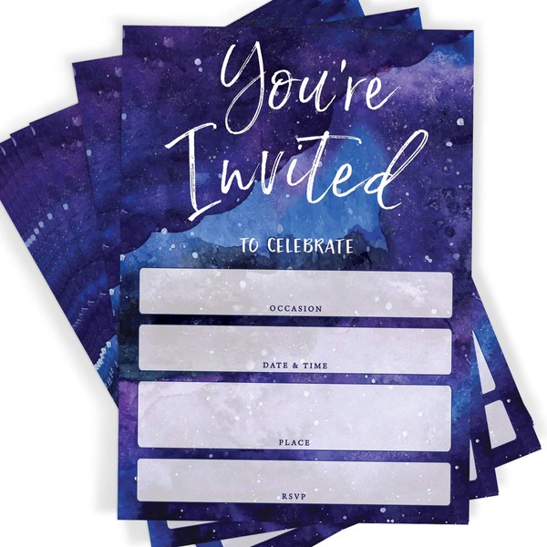 25 Galaxy Space Watercolor All Occasion Party Invitations