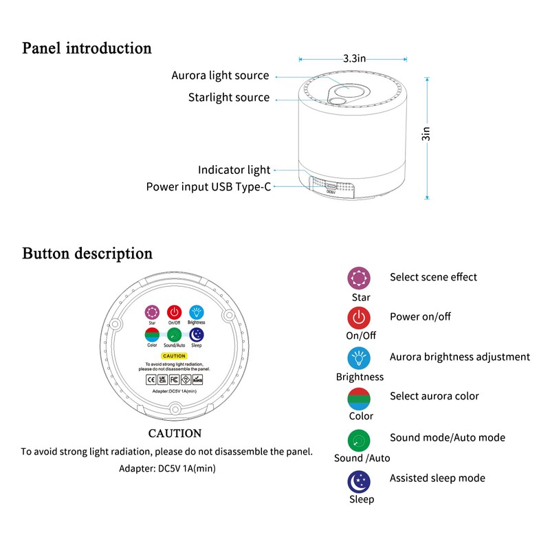 - AUTO MODE / SLEEP MODE / TIMER MODE / VOICE CONTROL: When adjusting the Galaxy Projector to Auto Mode, you can set your favourite lighting effects, and when you don't turn off the projector, the Galaxy Projector will always keep the lighting effects. When sleep mode is turned on for ten minutes, it will adjust to breathing mode and turn off automatically after about one hour. The Galaxy projector has an auto power off timer mode, use the remote control to set it to 0.5H/1H/2H/3H/4H after switching off, the projector will automatically switch off. When the voice-activated mode is turned on, the Galaxy projector's lights will change to the rhythm of music, clapping and stomping.