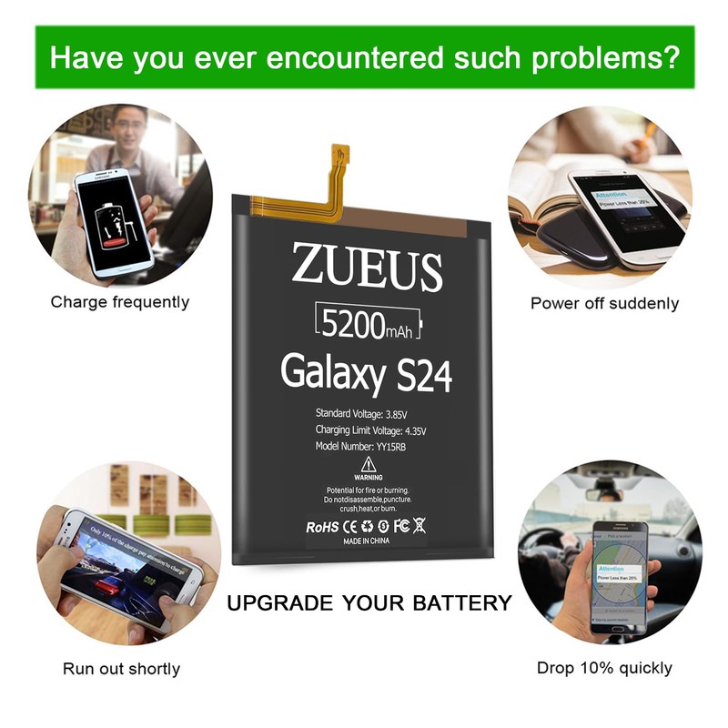 Galaxy S24 Battery, (2024 Upgraded ) 5200mAh EB-BS921ABY Li-Polymer Battery Replacement Compatible with Galaxy S24 5G SM-S921B SM-S921B/DS SM-S921U SM-S921U1 EB-BS922ABE with Screwdriver Tool Kit