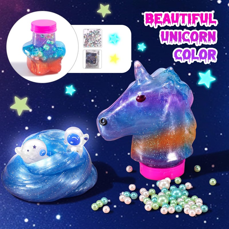- Hours of fun making Glow Glitter Slime, Galaxy Goo Slime and more with this Unicorn Galaxy Slime kit Get crafty with glitter slime slime! Add mica powders, foam balls then pour in the Unicorn container