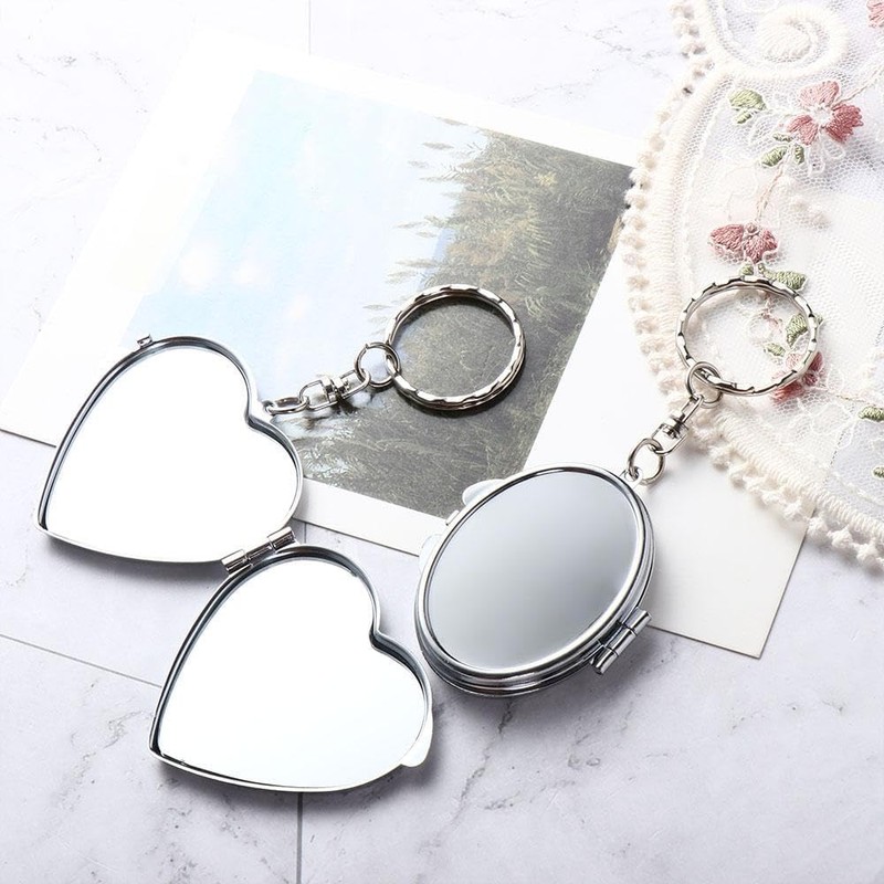 Galepromot Compact Mirror, Heart Shaped Metal Portable Folding Mirror Key Chain Round Square Heart Shape Cosmetic Mirror Compact Travel Pocket Mirror with Key Ring Keychain Compact and Travel Mirrors