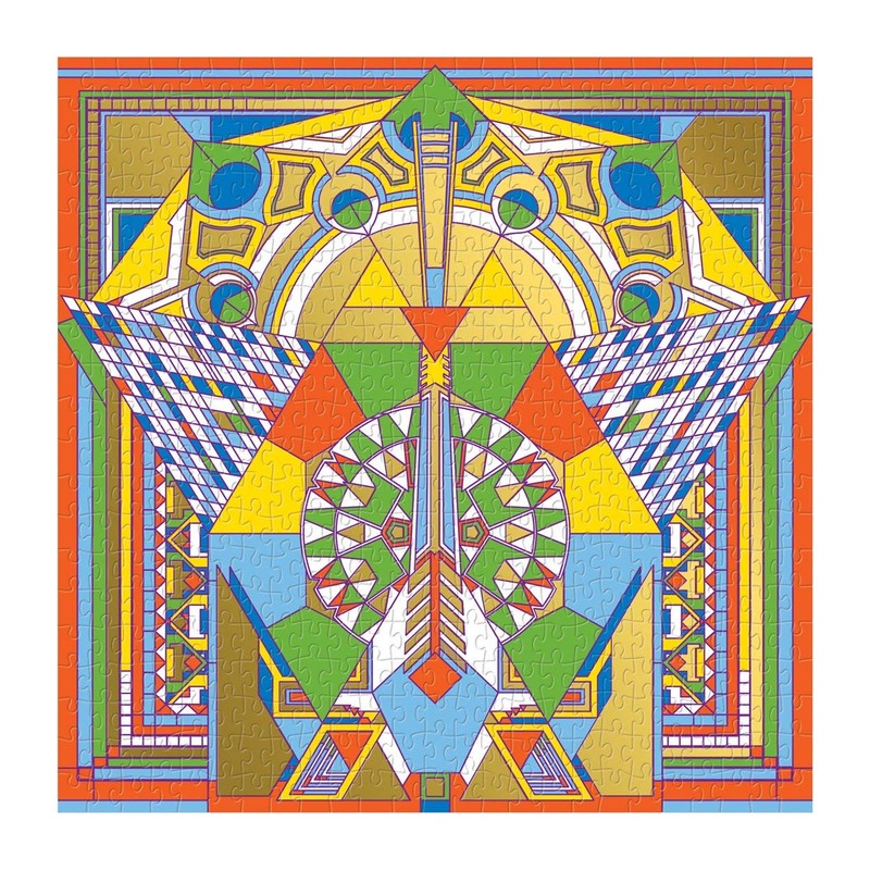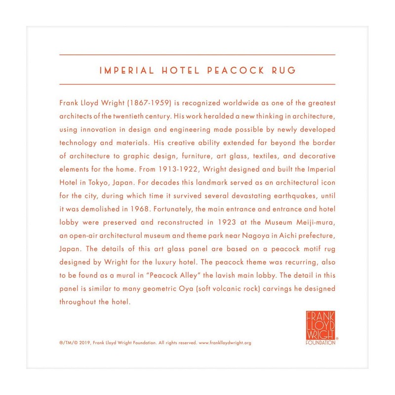 The Frank Lloyd Wright Imperial Hotel Peacock Rug 500 Piece Foil Puzzle brings shiny new glamour to the rug design. The gold foil embellishments on this puzzle bring the luxurious deco era back to life, piece by piece. Galison puzzles are packaged in matte-finish sturdy boxes, perfect for gifting, reuse, and storage.