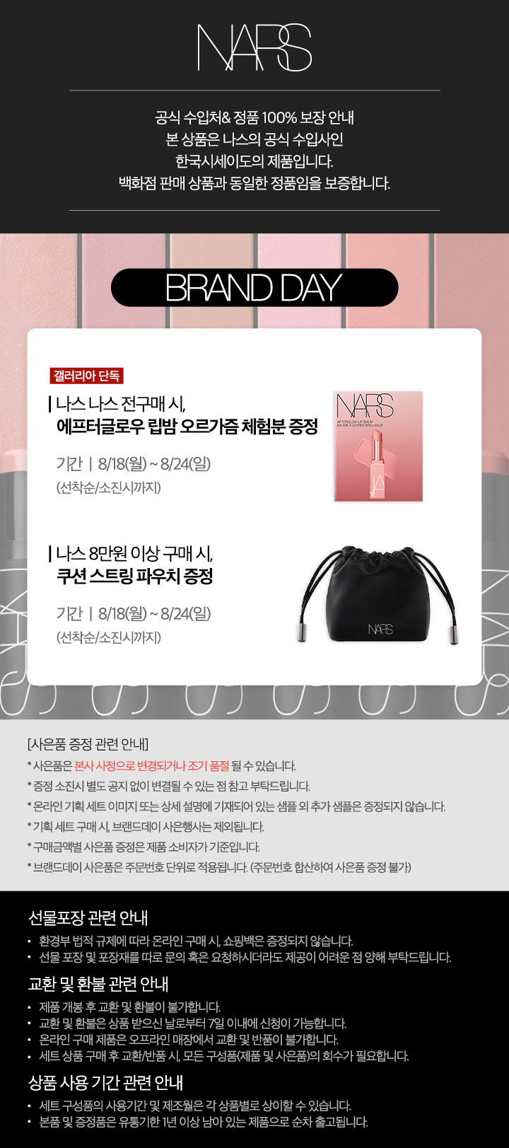 상품관련 상세문의처 : 갤러리아백화점(한화갤러리아㈜ 명품관) 나스 T.02-6905-3747