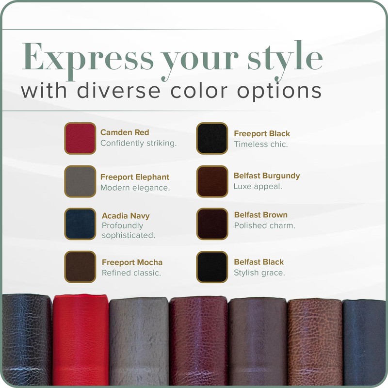 - 📔 Texture and Finish: 𝗕𝗘𝗟𝗙𝗔𝗦𝗧: Textured, slightly glossy finish: With a textured grain, it has a rugged feel with a slightly glossy finish. 𝗖𝗔𝗠𝗗𝗘𝗡 Slightly textured, matte finish: With a pronounced and deeper texture and a great look. 𝗙𝗥𝗘𝗘𝗣𝗢𝗥𝗧 Smooth, matte finish: A subdued leather, it sports a long-grain mixed that feels wonderful to the touch