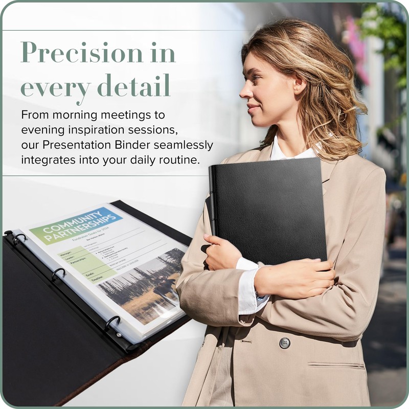 - 📃 𝗖𝗹𝗲𝗮𝗿 𝗕𝗶𝗻𝗱𝗲𝗿 𝗦𝗹𝗲𝗲𝘃𝗲𝘀: Simplify document management and presentation with 10 included clear presentation sheet protectors. These versatile sleeves offer a professional look while safeguarding your documents of various sizes and types. Our pages load from the top, acid free, and provide a clear view