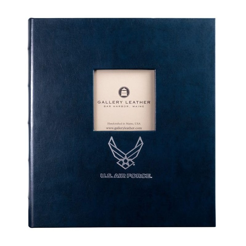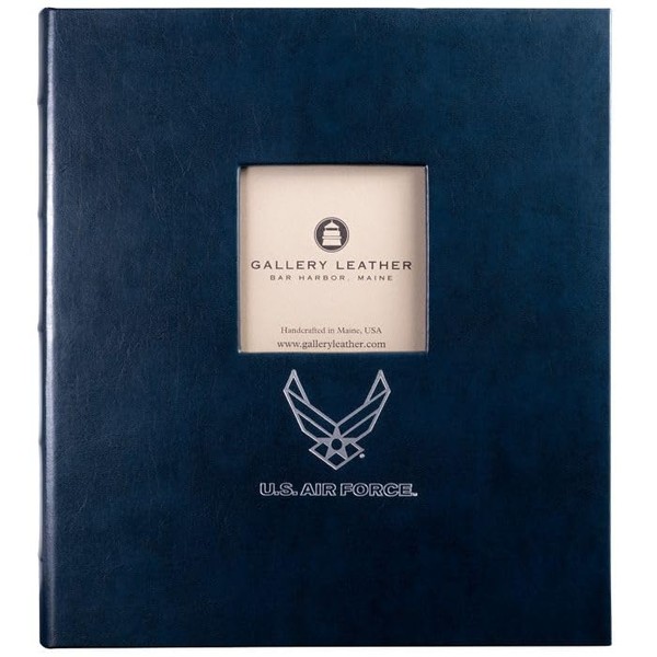 Gallery Leather 3 Ring Binder with Plastic Sleeves, Includes 10 Sheets, Sheet Size: 8.5" x 11" - Presentation Binder Rings with Window and Hubbed Spine, Thick: 0.75" Acadia Navy - US Air Force