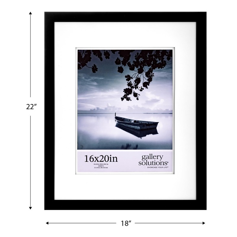 - SHOWCASE YOUR CHERISHED MEMORIES: With our Gallery Solution 16x20 black gallery wall frame, featuring a sophisticated double white mat opening perfectly tailored for an 11x14 image. Crafted with precision and attention to detail, this versatile frame offers flexibility to suit your decor preferences. The flat black finish adds a timeless elegance to any space, while the double matting creates a subtle yet impactful contrast, drawing attention
