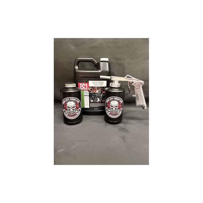 Gallon NH Oil, Standard Undercoating Spray Gun, and 2 Black Quart Bottles