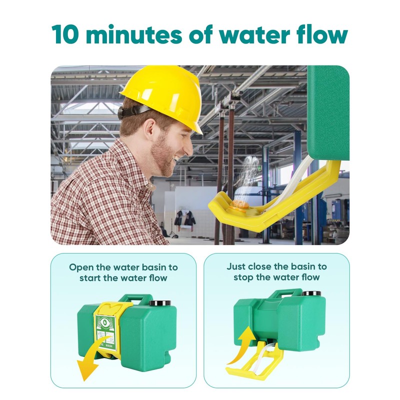 - [๐ ๐๐๐ฅ๐ฅ๐จ๐ง๐ฌ/๐๐๐]- No water plumbing required, add 8 gallons clean water into the eye wash station. Compact design, easy to move, suitable water capacity, not that heavy, but can provide 10min eye wash time.