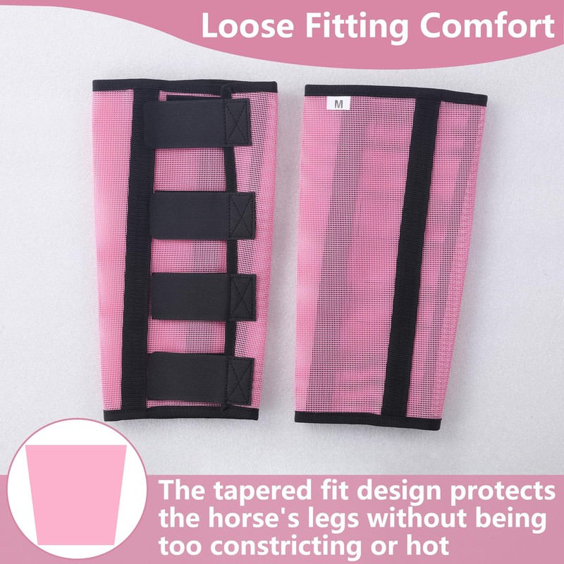 Gallopoff Horse Fly Boots Set of 4 - Non-Slip Leg Guards Extra Tough Mesh Ventilated, Adjustable Horse Fly Leggings Reduce Stomping & Hoof Stress & Leg Fatigue Pink Medium