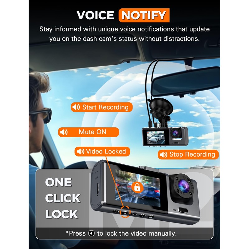 - 【Easy Installation & Lifetime Support 】– The M2 dash cam’s 3 adjustable cameras can be rotated to your preferred angle, making it compatible with a wide range of vehicles, including sedans, SUVs, trucks, and minivans. The simplified installation process, along with detailed instructions, ensures a hassle-free DIY setup. We also offer lifetime technical support, with dedicated person to assist with any after-sales issues.