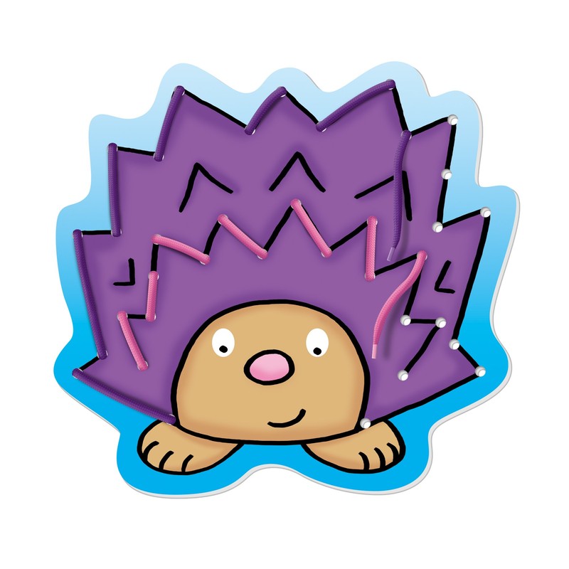 - Includes 6 shaped lacing pictures size: 20 x 20 cm, 8 coloured laces and play guide