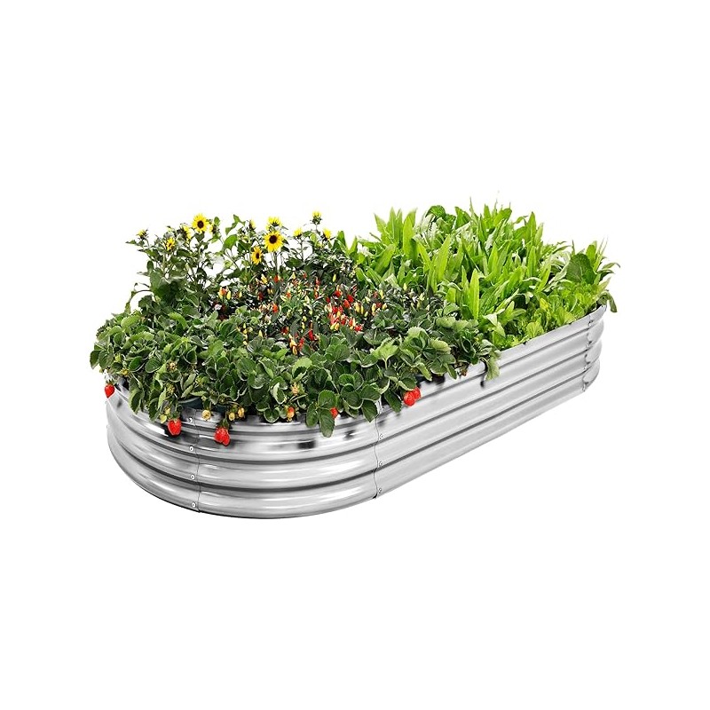 Galvanized Raised Garden Bed Kit, Oval Large Metal Planter Box, Sturdy and Durable, Garden Boxes Outdoor Raised for Vegetables, Fruits, Flowers and Herbs, 4x2x1ft (Silver)