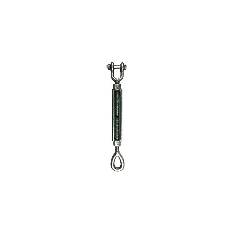 Jaw and Eye Turnbuckle made from Drop-forged Steel for durability and Hot Dip Galvanized for corrosion and weather resistance.