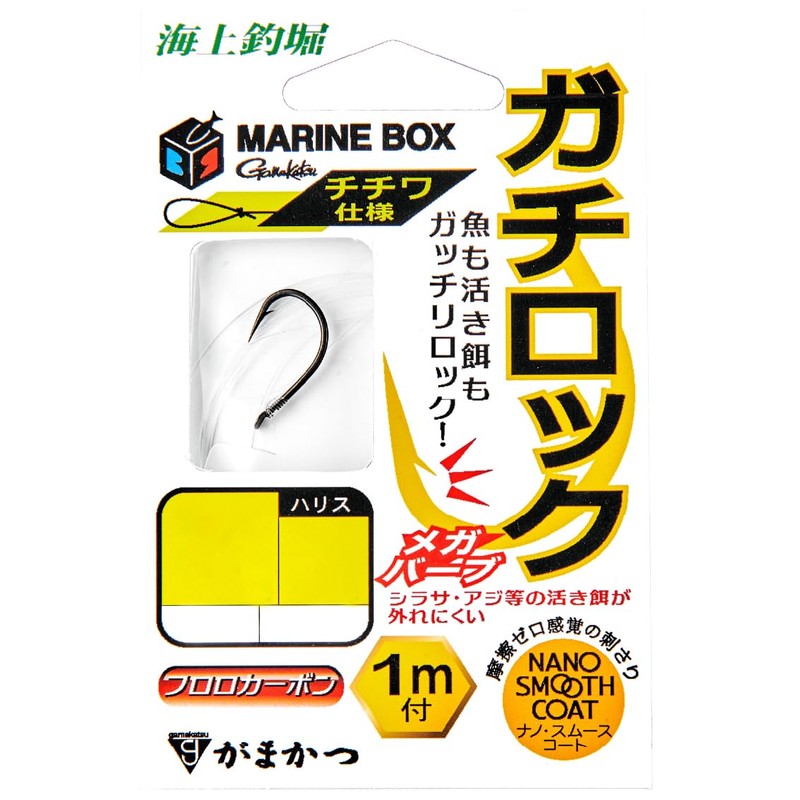 - Product Code: 60-231 / Series Name: Marine Fishing Hole, Marine Box, Gachi Lock with String, Chichihua Specifications... The large "Megabarb" barb makes live baits difficult to fall off from live baits. Super sharp hook tip "Spat Taper" and "Nano Smooth Coat" low-friction surface treatment, providing the highest level of penetration performance