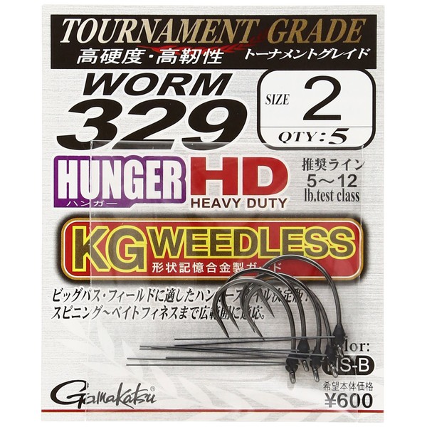 Gamakatsu Worm Hook Worm 329 Hanger HD KG Weedless 1/0 4 NS Black 68150