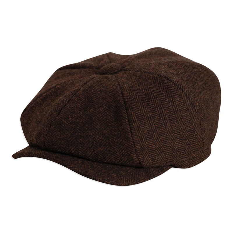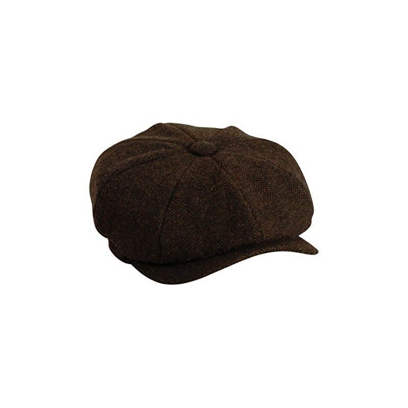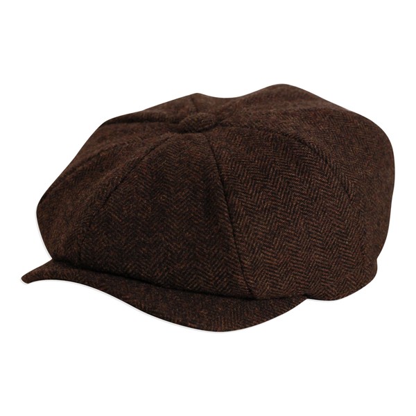 Gamble & Gunn Shelby' Flat Cap Brown Herringbone Vintage Style Baker Boy Cloth Hat Button Top - 61cm