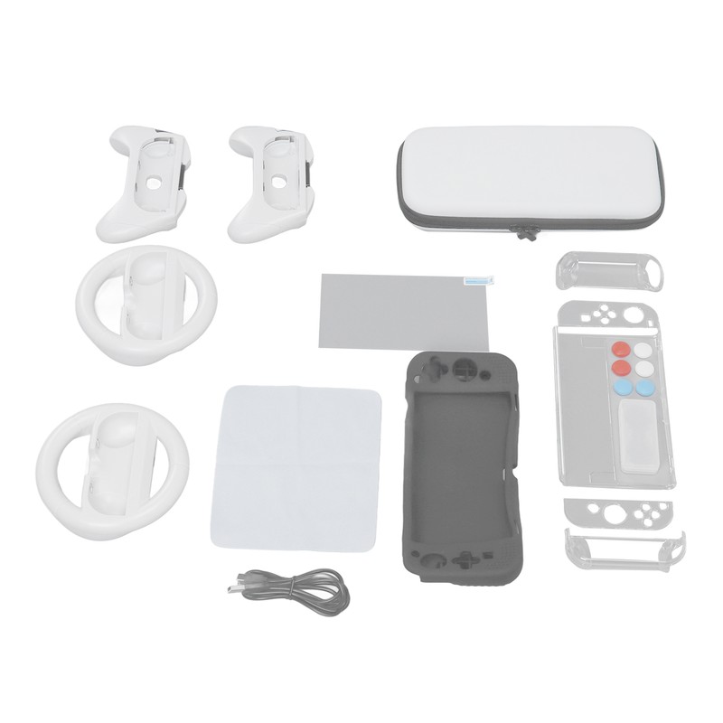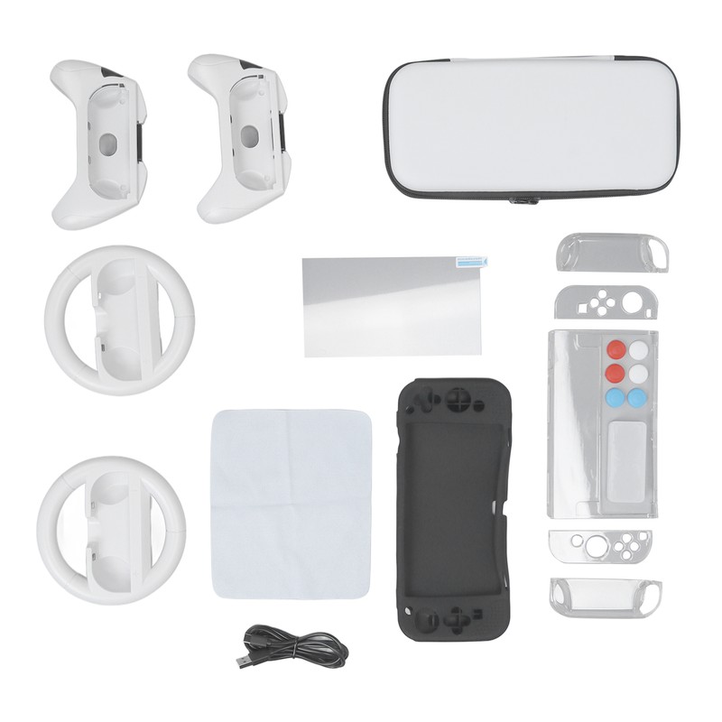 Game Accessories Kit 16 in 1 Controller Bracket Screen Protector Thumb Grip Cover with Carrying Case for OLED