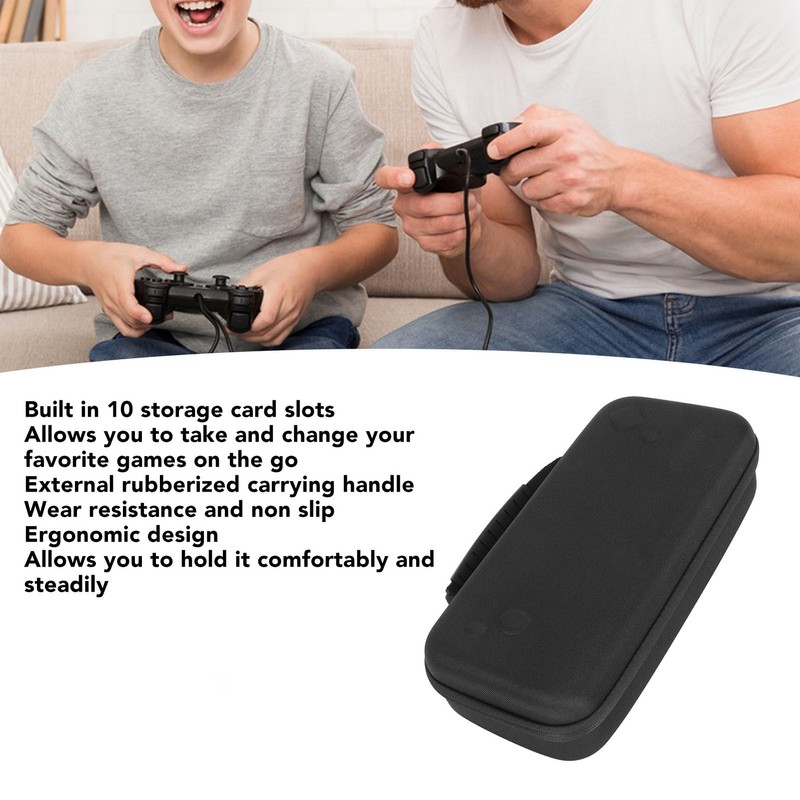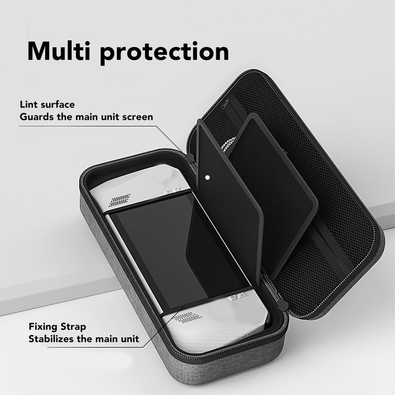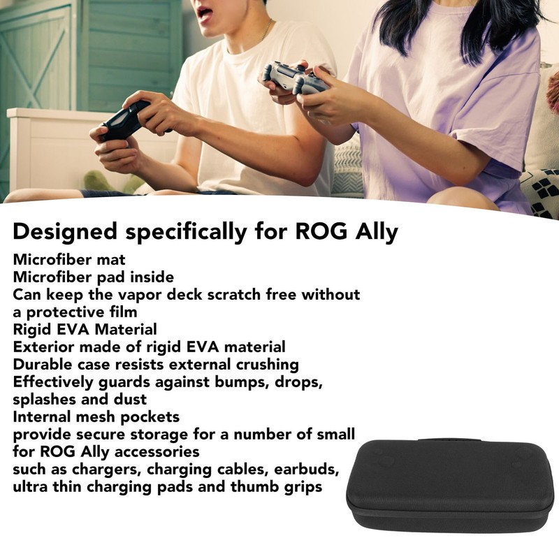 1、PROFESSIONAL DESIGN: This carrying case is specifically designed for ROG Ally with a small microfiber padded interior that keeps the vapor deck scratch free without a protective coating. 2、EVA MATERIAL: The exterior of the for Rog Ally carrying case is made of EVA material, a durable shell that resists external compression and effectively guards against bumps, drops, splashes and dust. 3、INTERNAL MESH POCKET: The internal mesh pocket on the for Rog Ally carrying case provides secure storage for a number of small for ROG Ally accessories such as chargers, charging cables, earbuds, slim charging pouches, and thumb grips. 4、10 STORAGE CARD SLOTS: for Rog Ally carrying case has 10 built in storage card slots, allowing you to carry and change your favorite games wherever you go. 5、NON SLIP COMFORTABLE CARRYING HANDLE: The external rubber carrying handle is abrasion resistance, non slip and ergonomically designed, allowing you to hold it comfortably and steadily.
