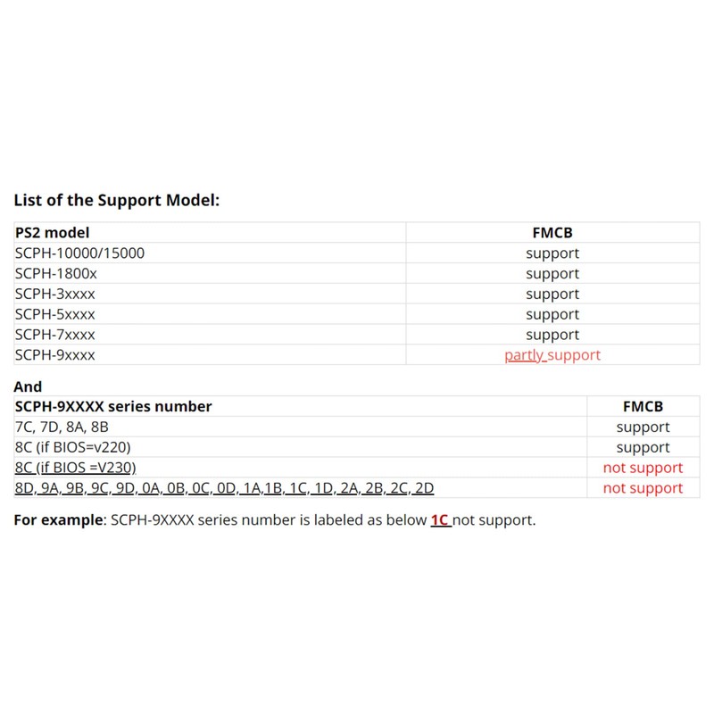 For Example: SCPH-9XXXX series number is labeled as below 1C not support