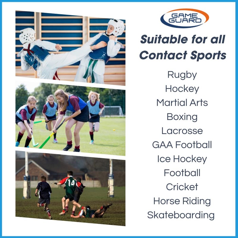 - ✅ Game Guard Gum shields are suitable for all contact sports Rugby, Hockey, Lacrosse, Cricket, Boxing, Martial Arts, MMA. Also suitable for Horse Riding, Scootering, and Skateboarding. In fact, any sport where there is risk of injury to the mouth.