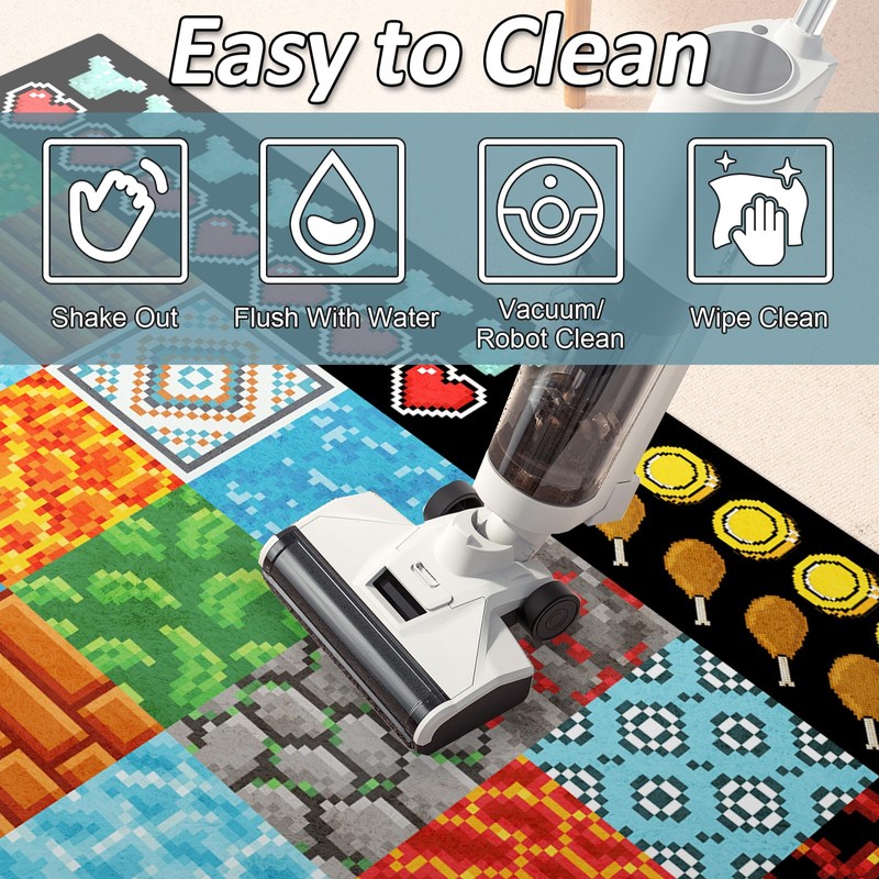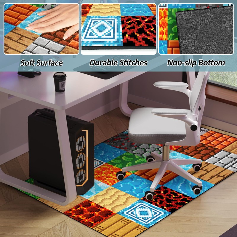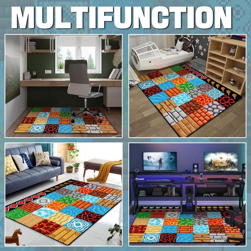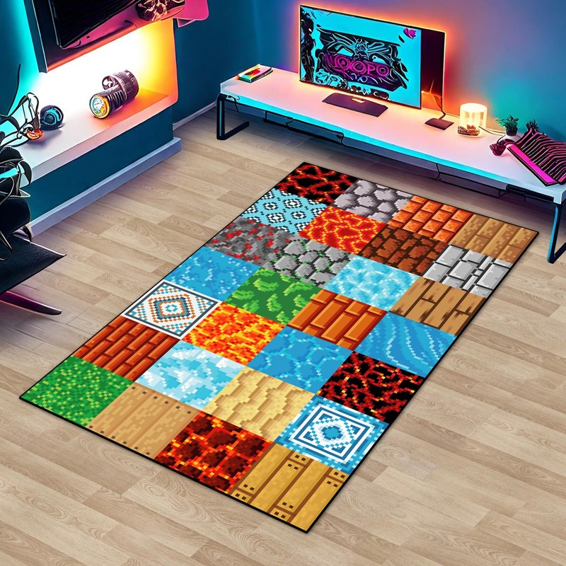 - Pixel Game Themed Area Rug: This classic rectangular rug features a block pixel game design, perfect for game rooms, bedrooms, or living spaces.