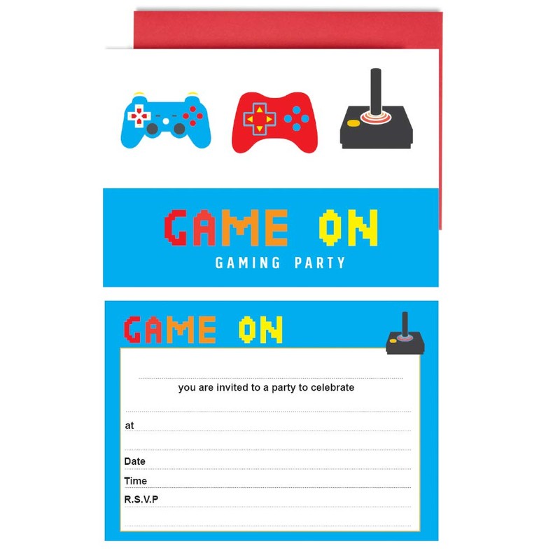 - RETRO GAMING BIRTHDAY INVITES - Pack of 10 high quality Gamer Birthday Invitations ✩ A6 Size (105mm x 148mm) ✩ Supplied with Red Envelopes ✩ FREE UK DELIVERY ✩