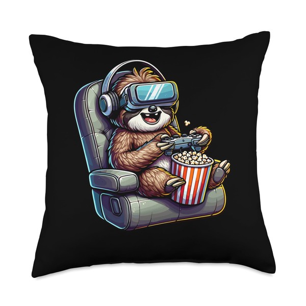 Gamer Sloth Popcorn Gaming Chair Headphones Games Player Throw Pillow