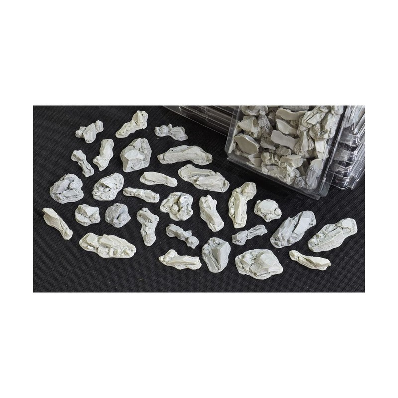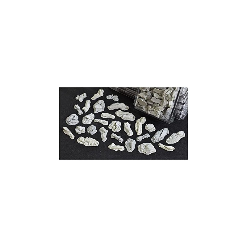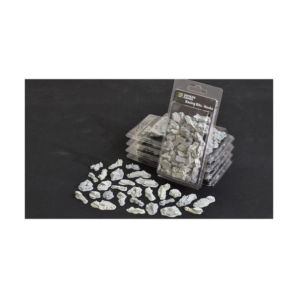 Basing Bits: Rocks are scaled clones of different sized clusters of rocks and small stones. These perfect and detailed replicas allow you to recreate a very large variety of rocky environments. Best used to simulate rocky fields of acid bedrock outcrops, like schists and slates or harder greywackes and quartzites.