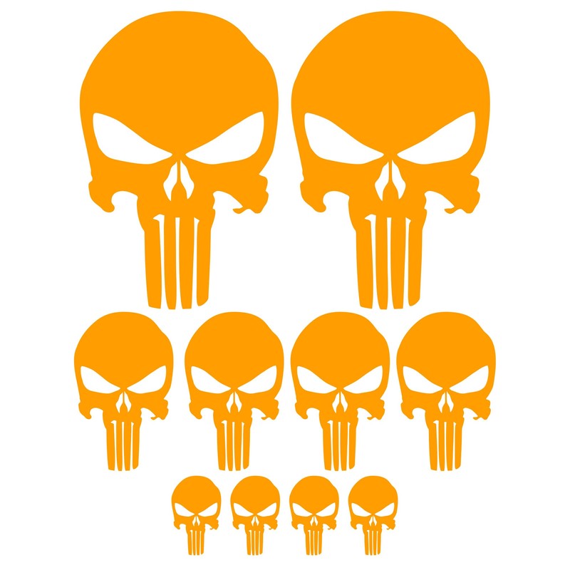 GamesMonkey 10 Stck Totenkopf-Aufkleber fr Autos oder Motorr?der - Totenkopf - 3 Gr??en. Auto-Motorrad-Fahrrad-Roller (Orange)