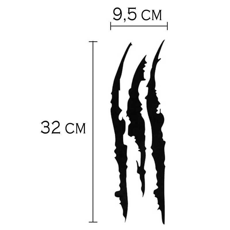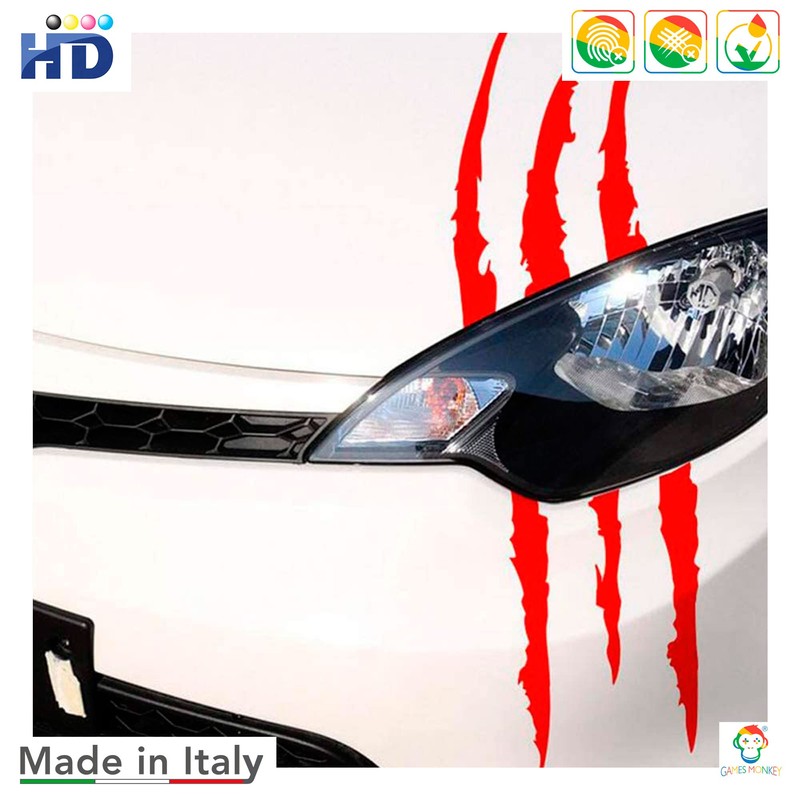 Wollten Sie schon immer Ihrem Auto eine pers?nliche Note verleihen? Suchen Sie nicht weiter. Mit diesen Aufklebern k?nnen Sie der Welt zeigen, wer Sie sind und wie Ihre Pers?nlichkeit ist. Machen Sie sich bereit, Ihre Krallen mit diesen Aufklebern zu zeigen! Machen Sie Ihr Auto mit unseren fantastischen Scratch Claws-Aufklebern dreckig. Unser Set Kratzaufkleber - Monster besteht aus 2 Kratzern. Sie k?nnen aus 23 verfgbaren Farben w?hlen. Gr??e: 32 x 9,5 cm. Perfekt fr Ihr Auto, sie haften perfekt und sind best?ndig gegen Sonne, Wasser und schlechtes Wetter. Besch?digt Ihren Autolack nicht. Hergestellt aus hochwertigem Vinyl