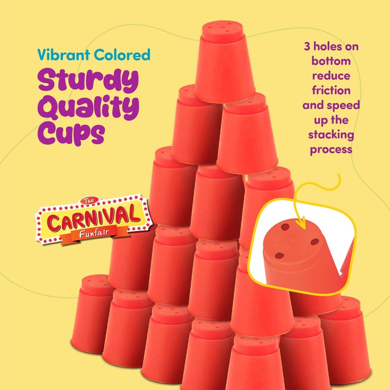 - GREAT QUALITY CUPS: We pride ourselves in giving you fun stuff that stands the test of time. That’s why we’ve used sturdy plastic to ensure the cups last through all that enthusiastic stacking. Measuring 4 inches in height, these stacking cups are conveniently portable for fun on the go while still being easy to manipulate.
