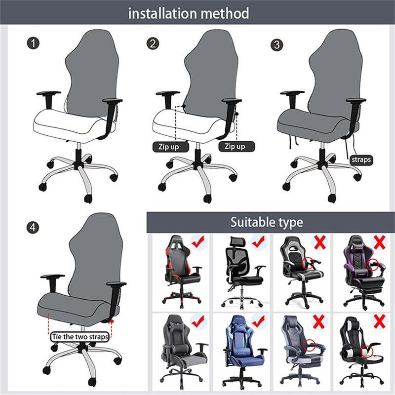 - Chair cover material: gaming chair cover is made of 85% polyester and 15% elastane and can be stretched. Office chair covers the cracks, cracks and shredded edges of your simple old office chairs. Elastic edge keeps the cover securely in place. The elastic, non-slip, soft, breathable, does not fade easily and does not deform easily. Wrinkle resistant and reusable.