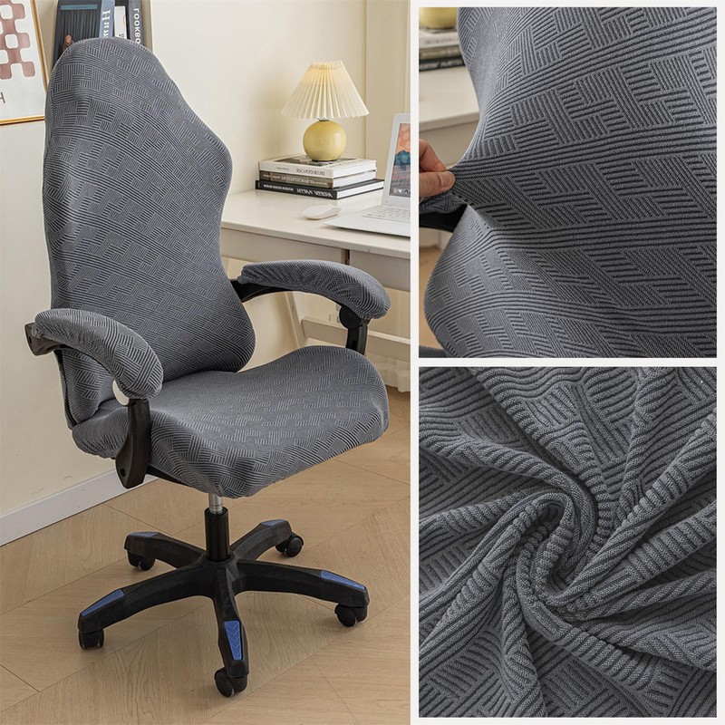 The office chair cover includes seat cover and backrest cover. Easy to install and clean. It is suitable for most desk chairs.