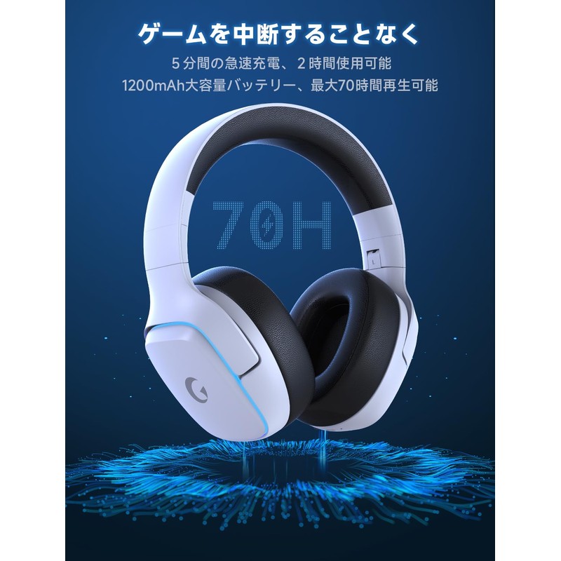 - 【急速充電&長いバッテリー寿命】:bluetooth ヘッドホンの1200mAh のバッテリーは最大 70 時間のプレイ時間を提供し、急速充電機能によりわずか 5 分の充電で 2 時間の使用が可能になり、ノンストップのゲームに最適です。