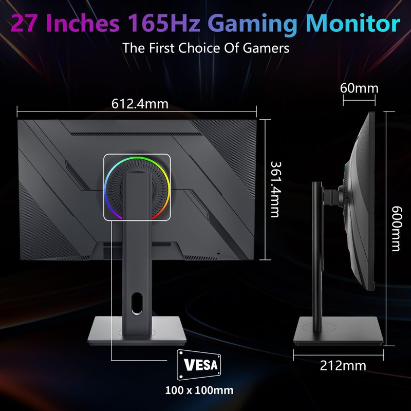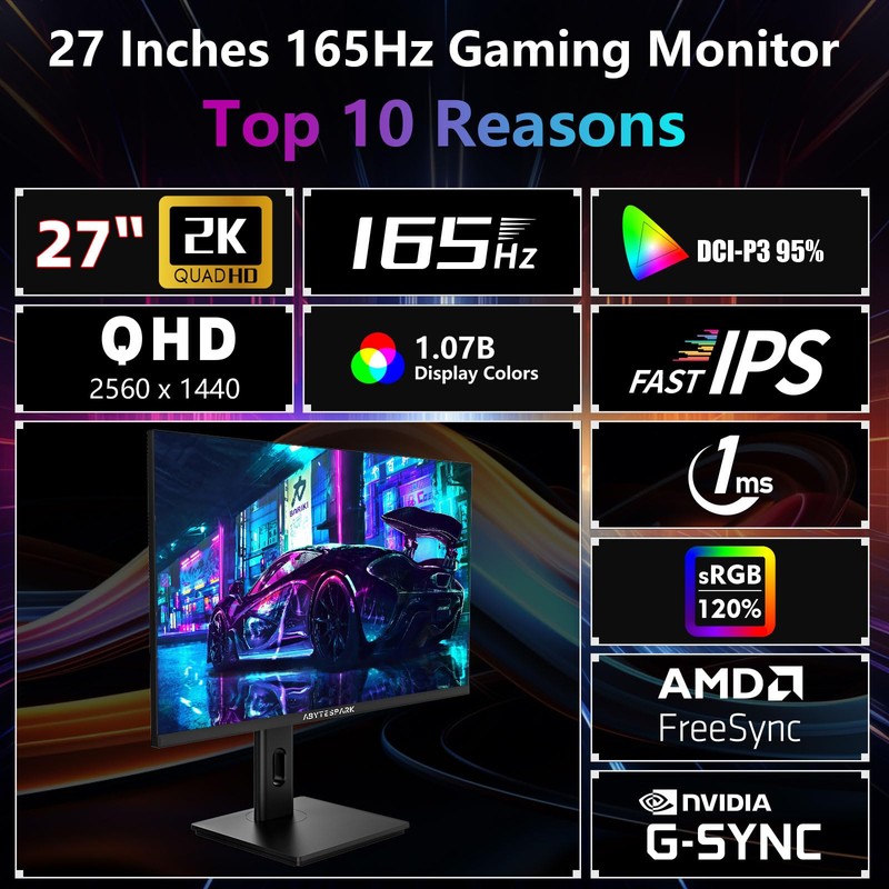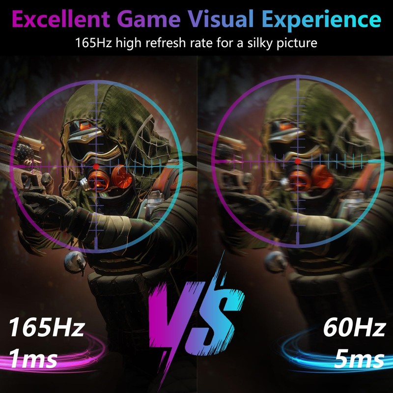 - Stunning visuals: This Gaming monitor with 2K QHD(2560*1440) resolution and a high refresh rate of 165Hz, 1ms response time (GTG),designed for professional gamers and immersive gaming, presenting stunning high-quality graphics and excellent detail.