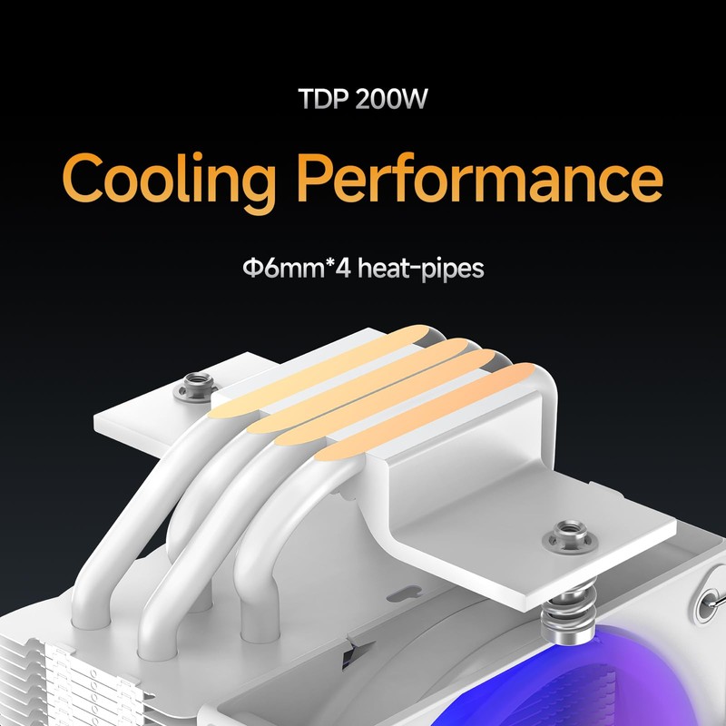 Gamma A40 ARGB WH CPU Cooler,100mm PWM Fan,133mm Height Single Tower Computer CPU Air Cooler,4 Copper Heat Pipes,ARGB Function,Fancy Top Cover,for Intel LGA 115X/1200/1700/1851&AMD AM4/AM5