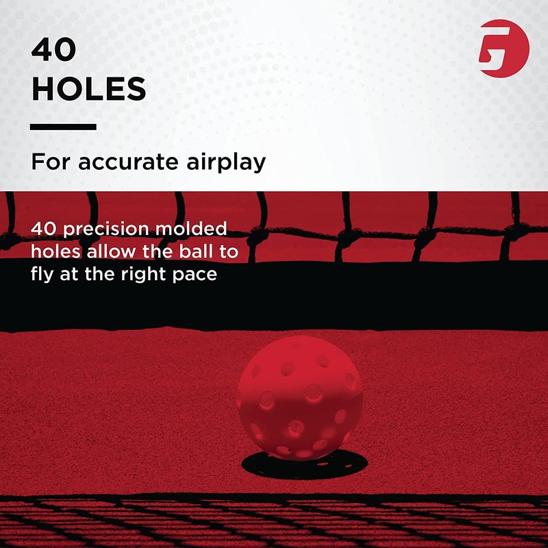 - HIGH COURT VISIBILITY & BOUNCE: The bright 2-tone colored ball design is easy to track against neutral backdrops. Engineered for a consistent bounce on all surfaces in indoor pickleball courts, this set provides easy, upbeat play.