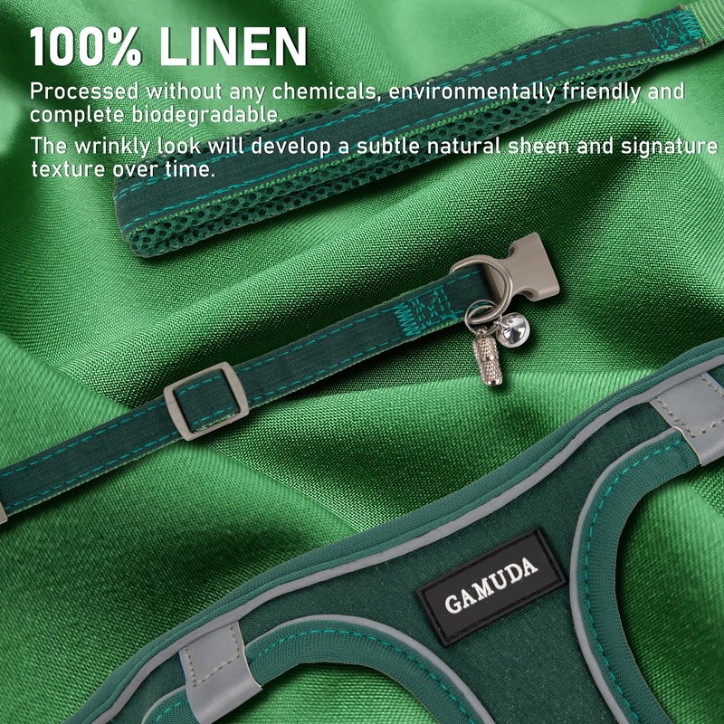 GAMUDA Small Pet Harness Collar and Leash Set, Step in No Chock No Pull Linen Fabric Soft Mesh Dog Vest Harnesses Reflective for Dogs Puppy Cats Kitten Rabbit (Green, XL)