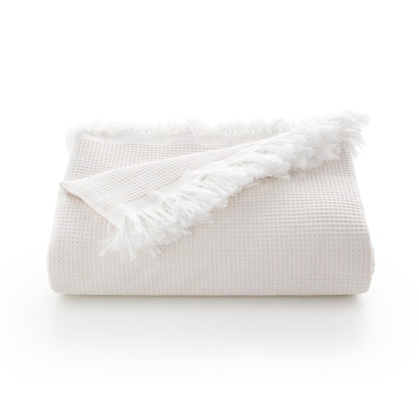 GAMUSI Multipurpose Bedspread for Bed and Sofa Bedspread Soft Breathable Cotton Honeycomb Pattern 180 x 140 cm Natural