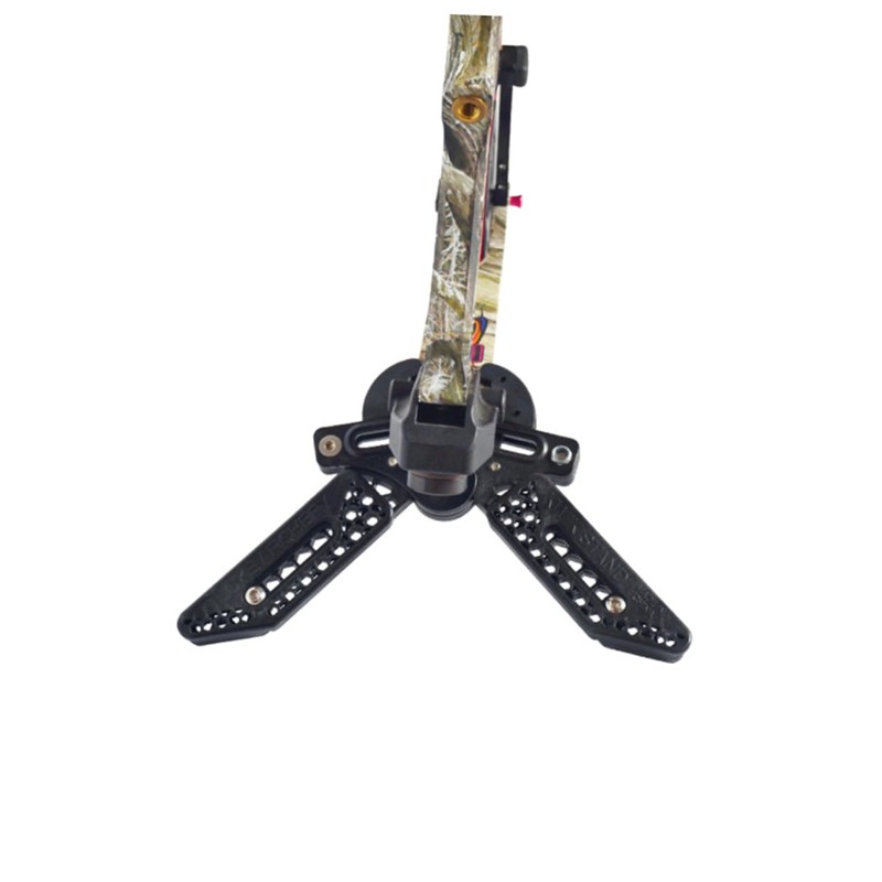 stand Works for both recurves or compounds. holder style bow stand that clips to the bottom limb of your Bow. kick holder Simply clip the stand to your bottom limb and lean your bow forward till it rests on the stabilizer.adjustable stand field, , or 3D