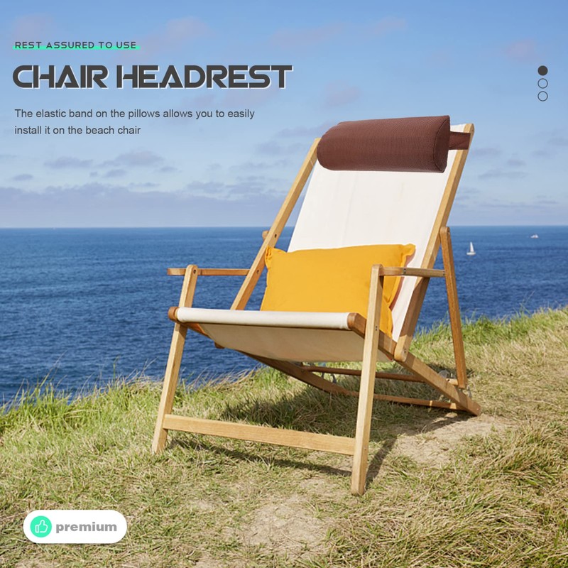 GANAZONO Deck Chair Headrest Pillow Ergonomic Chair Support Cushion for Beach Camping Outdoor Use Comfortable High-Class Elastic Straps for Easy Attachment