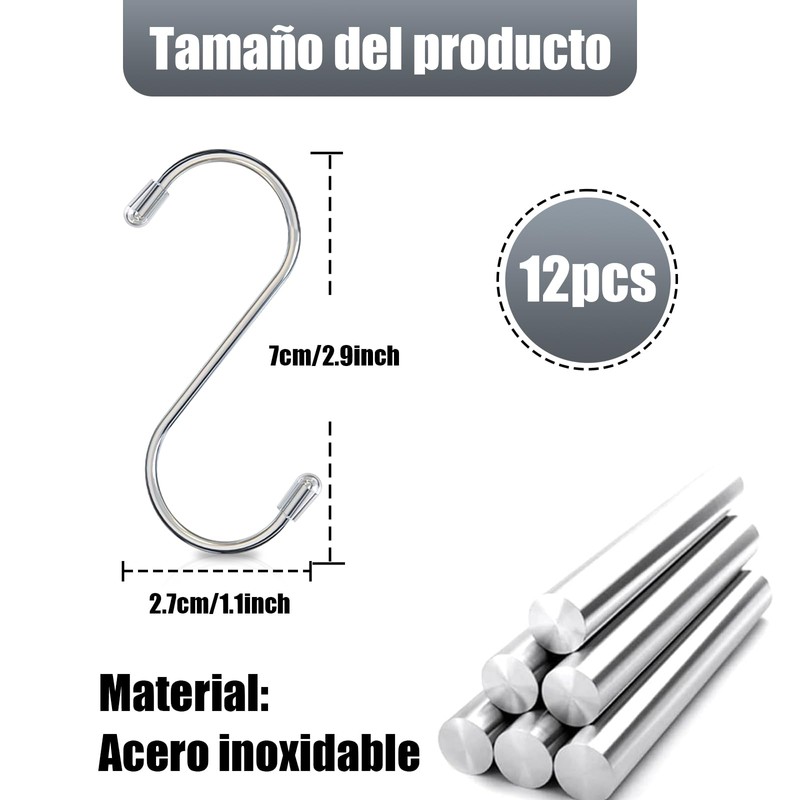 - Tamaño: Recibirá 12 gancho en S de acero inoxidable