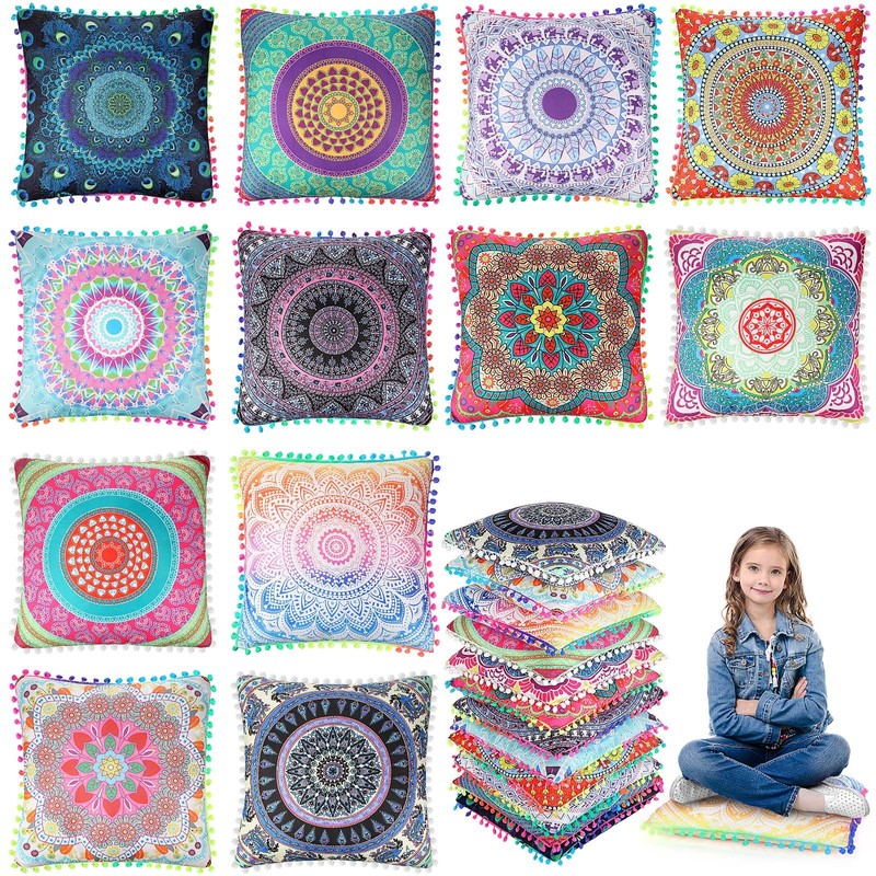 - Floor Seating: these boho cover is a gorgeous piece of mandala art, made with safe fabric featuring cute pom pom trim filled with PP cotton, soft and safe, has a good rebound effect, and these floor pillow can give you firm support and keep the shape to avoid bending easily, and also can provide effective cushioning for kids and avoid hip injuries