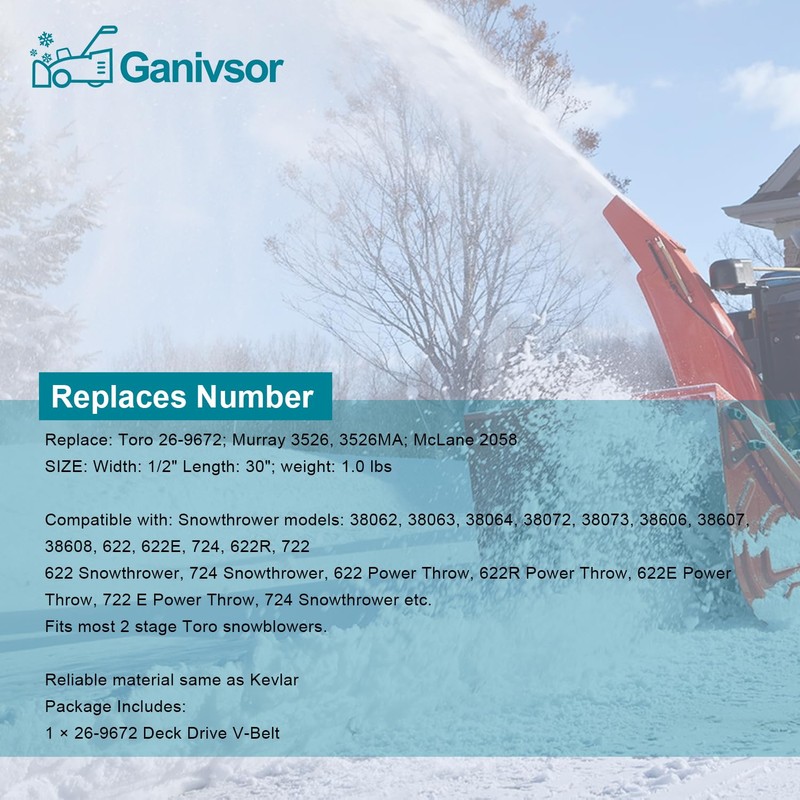 Ganivsor 26-9672 Auger Drive V-Belt for Toro 26-9672 Snow Thrower 622 622E 622R 722E 724 Deck Drive V-Belt